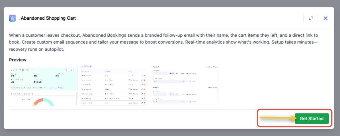 In ACME Backoffice > Apps > Abandoned Shopping Cart > Click Get Started