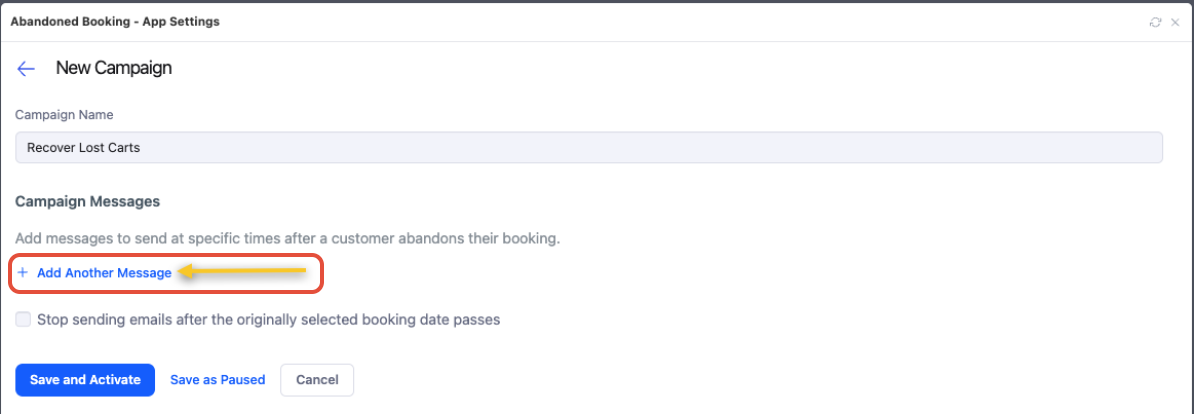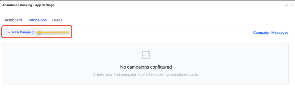 Click Campaign Messages to create your Campaign Messages, which are the emails that will be sent to your customers who abandoned their bookings.